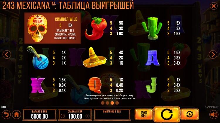 Таблица выплат 243 Mexicana