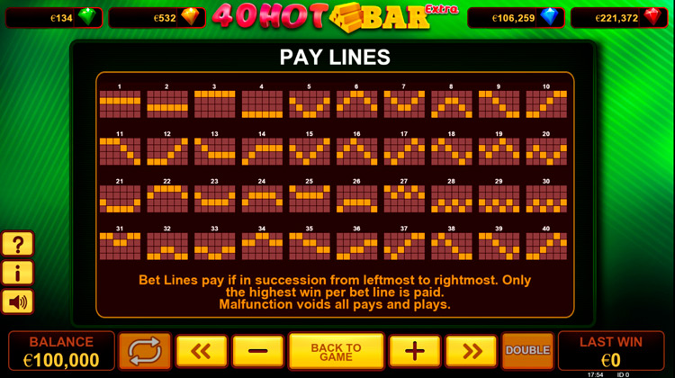 Таблица выплат 40 Hot Bar Extra