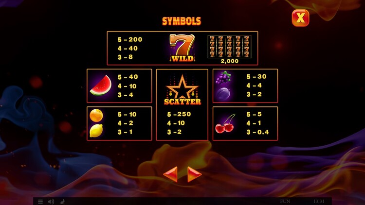 Таблица выплат 40 Lucky Fruits
