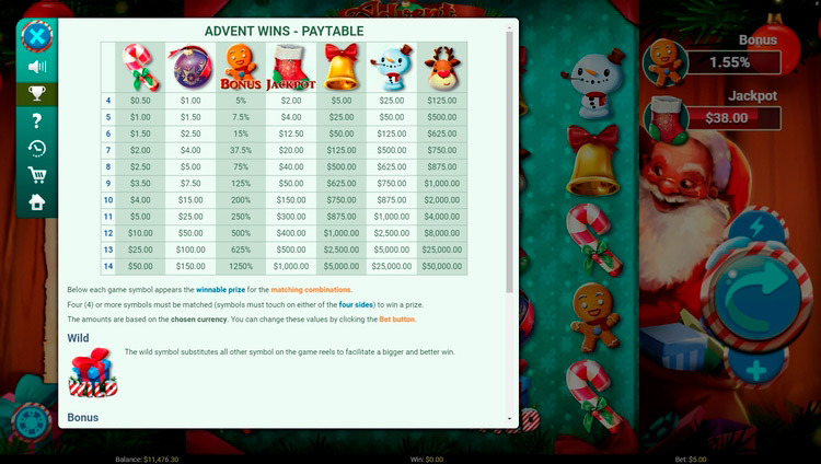 Таблица выплат Advent Wins