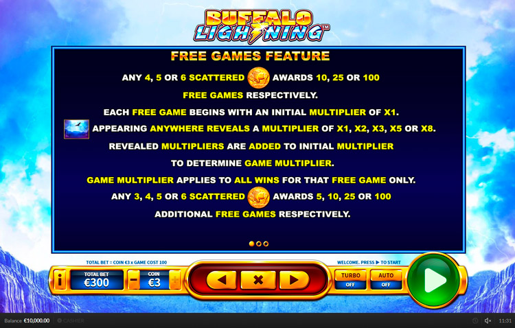 Таблица выплат Buffalo Lightning