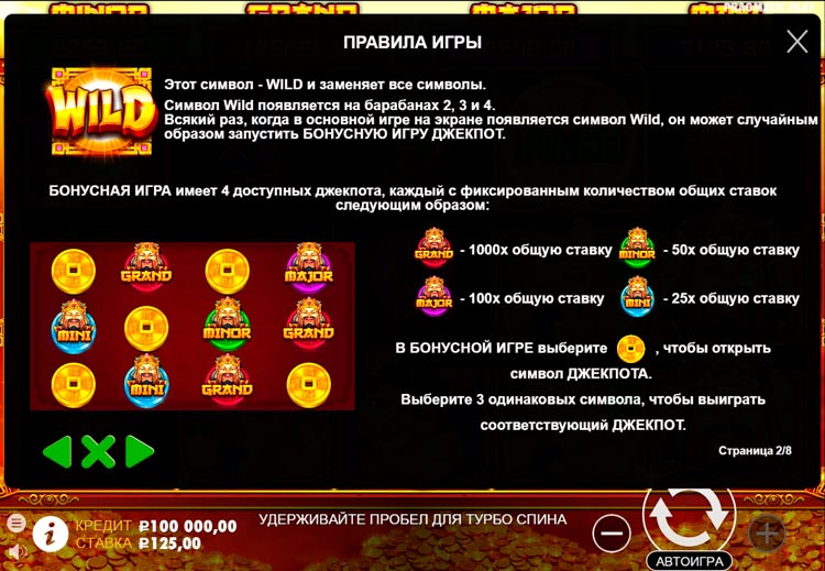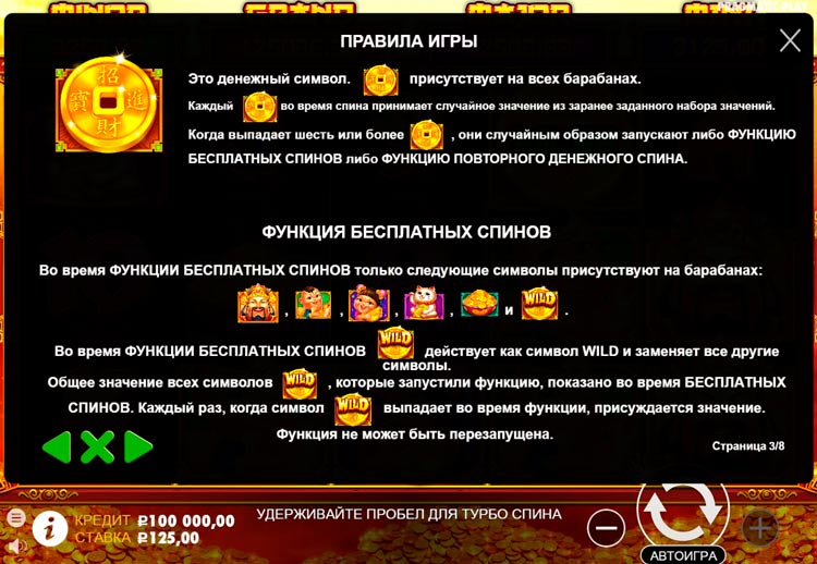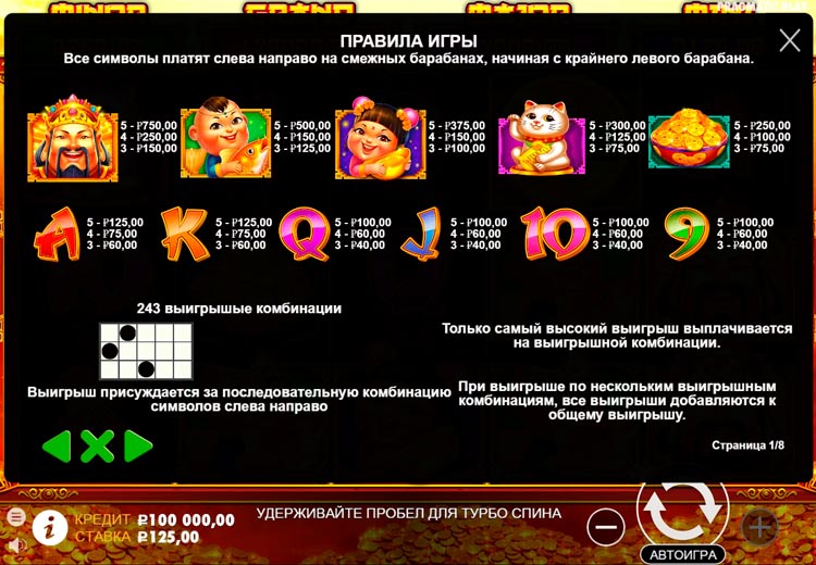 Таблица выплат Caishen’s Cash