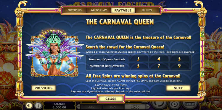 Таблица выплат Carnaval Forever