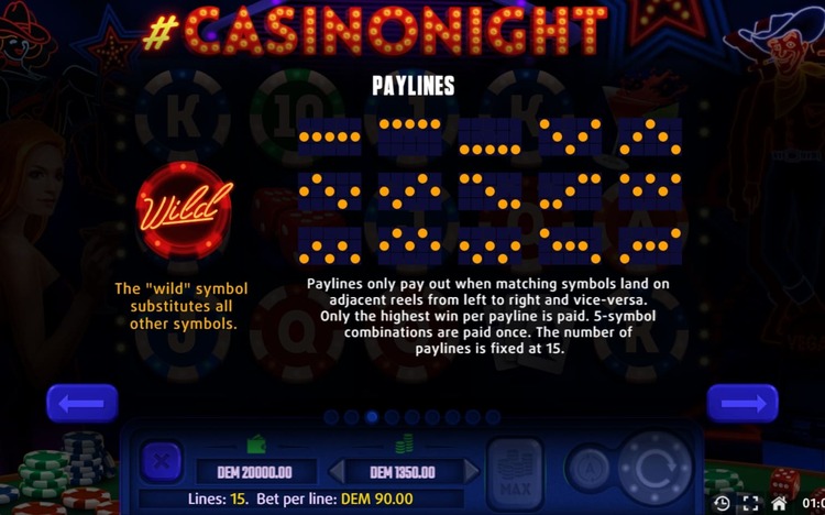 Таблица выплат Casino Night