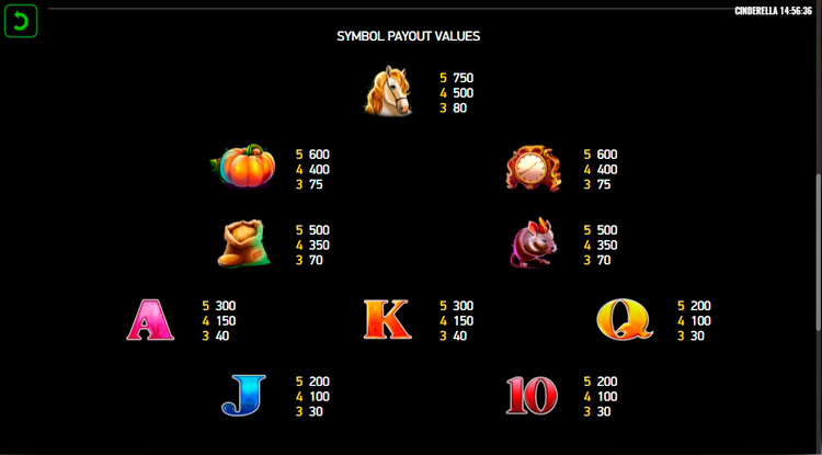 Таблица выплат Cinderella