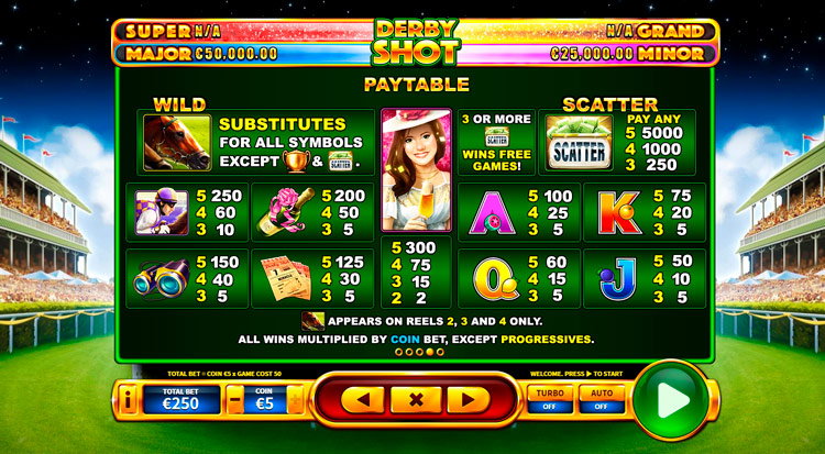 Таблица выплат Derby Shot
