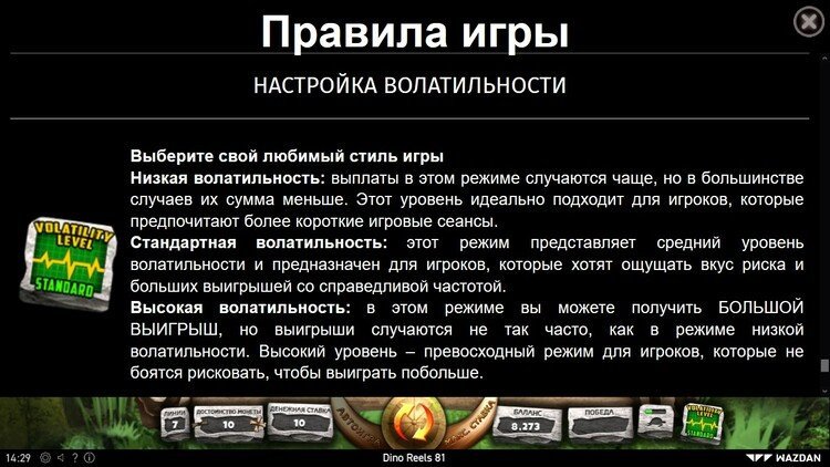 Таблица выплат Dino Reels 81