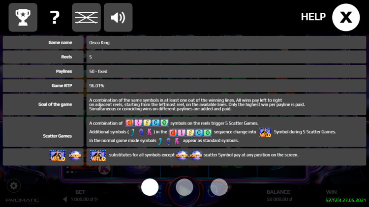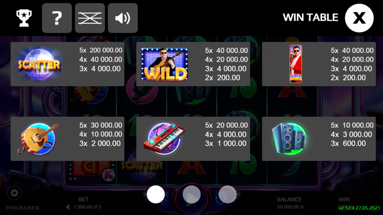 Таблица выплат Disco King