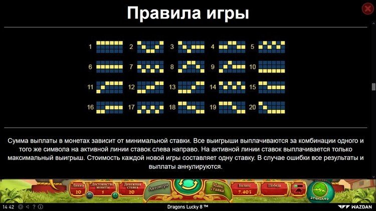 Таблица выплат Dragons Lucky 8