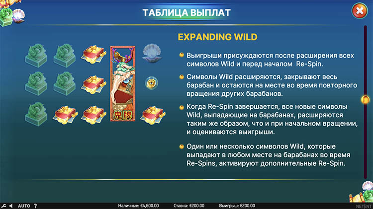 Таблица выплат East Sea Dragon King
