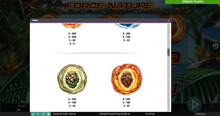 Таблица выплат Force of Nature