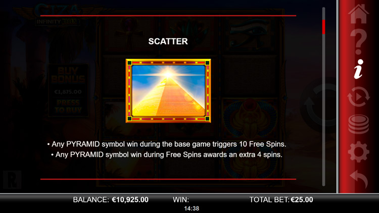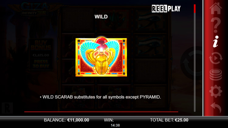 Таблица выплат Giza Infinity Reels