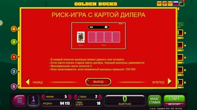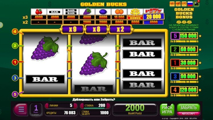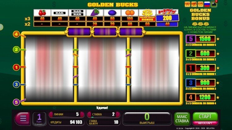 Таблица выплат Golden Bucks