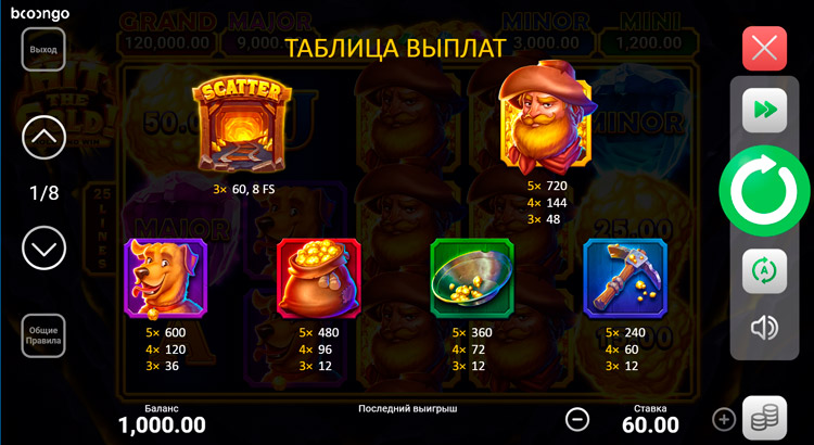Таблица выплат Hit the Gold! Hold and Win