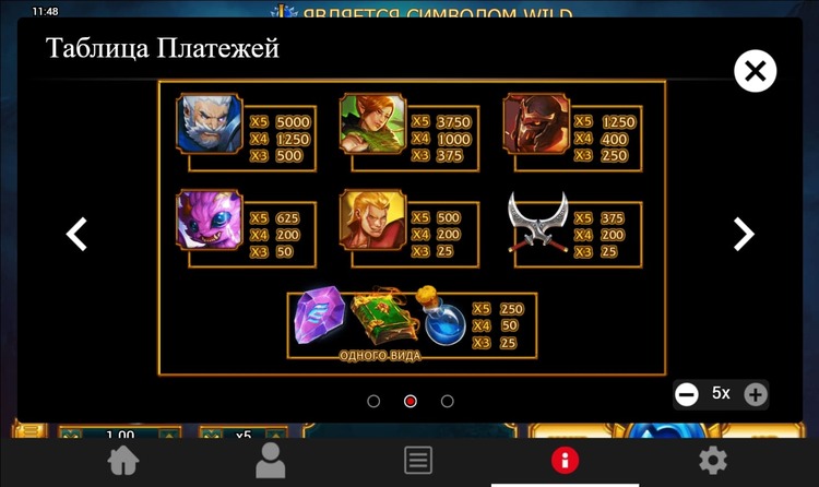 Таблица выплат Legendary