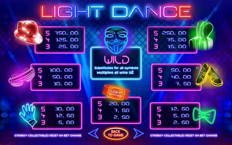 Таблица выплат Light Dance