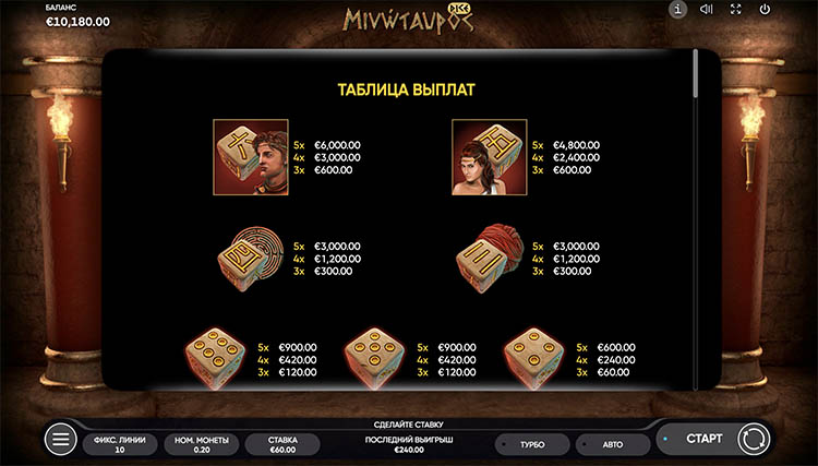 Таблица выплат Minotauros Dice