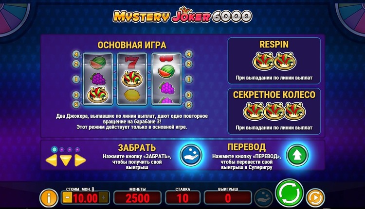 Таблица выплат Mystery Joker 6000