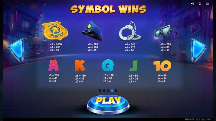 Таблица выплат Reel Heist