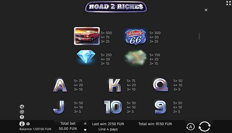Таблица выплат Road 2 Riches