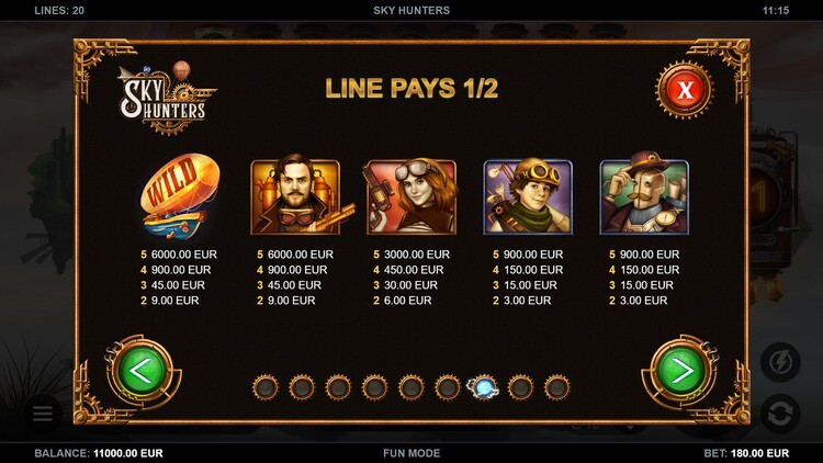 Таблица выплат Sky Hunters