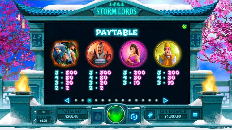 Таблица выплат Storm Lords