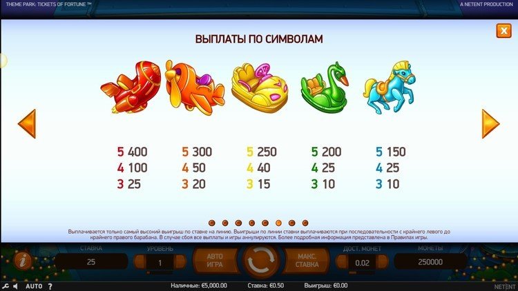Таблица выплат Theme Park