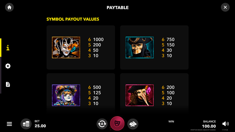 Таблица выплат Venetian Magic