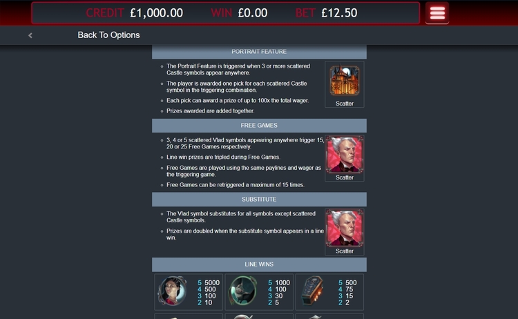 Таблица выплат Vlad’s Castle