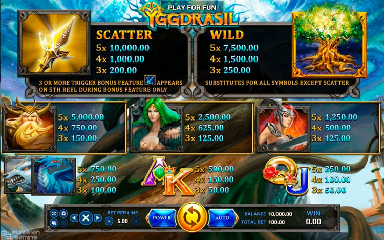 Таблица выплат Yggdrasil