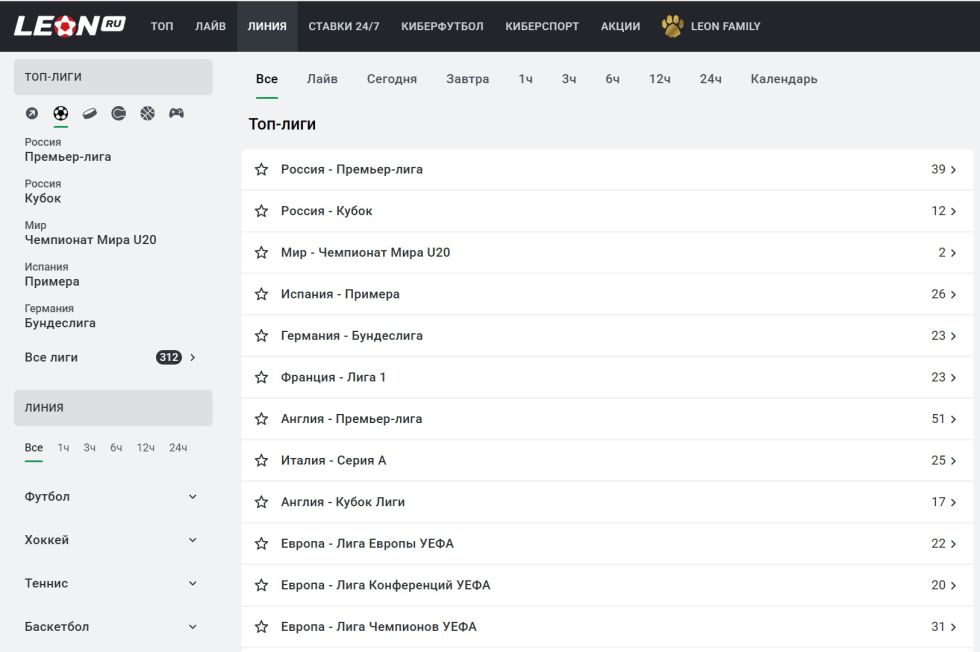 БК Леон (Leon.ru) — надёжная, легальная букмекерская контора с большим выбором ставок, прозрачными условиями и честными выплатами.